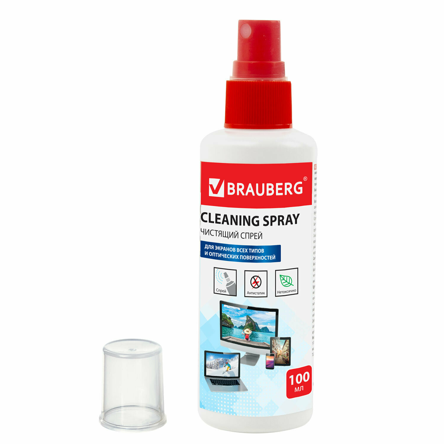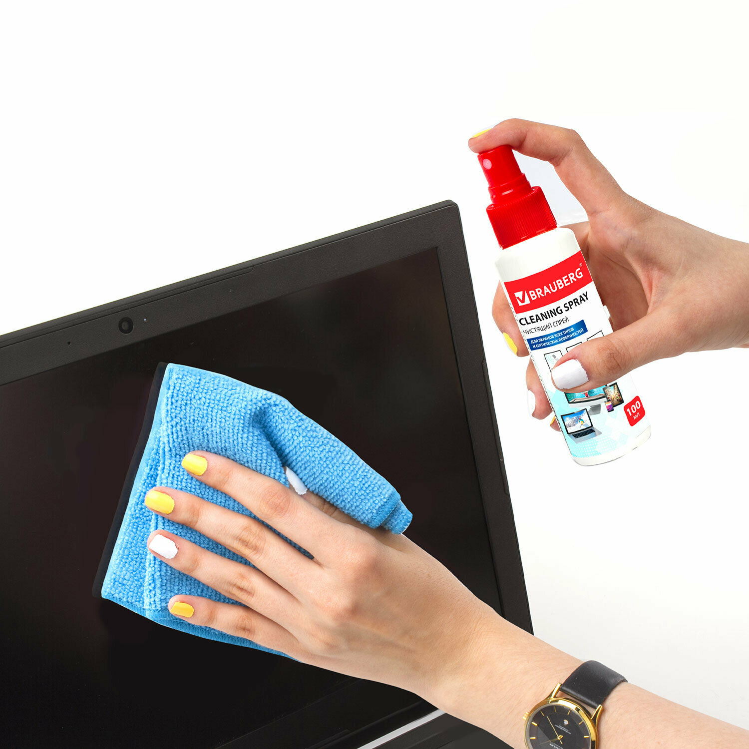 Купить Чистящий набор для экранов всех типов и оптики BRAUBERG, комплект салфетка и спрей, 100 мл, 510341