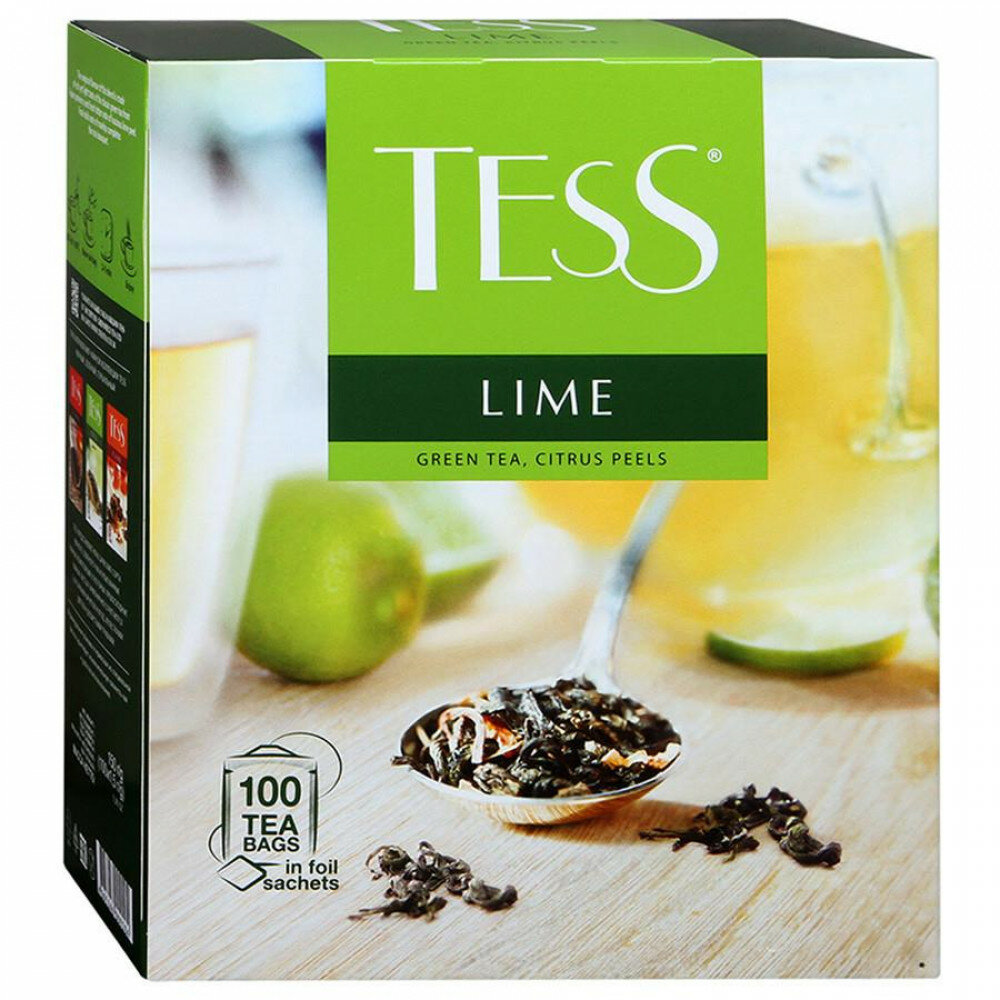 Чай TESS (Тесс) "Lime", зеленый с цедрой цитрусовых, 100 пакетиков по 1.5 г, 0920-09