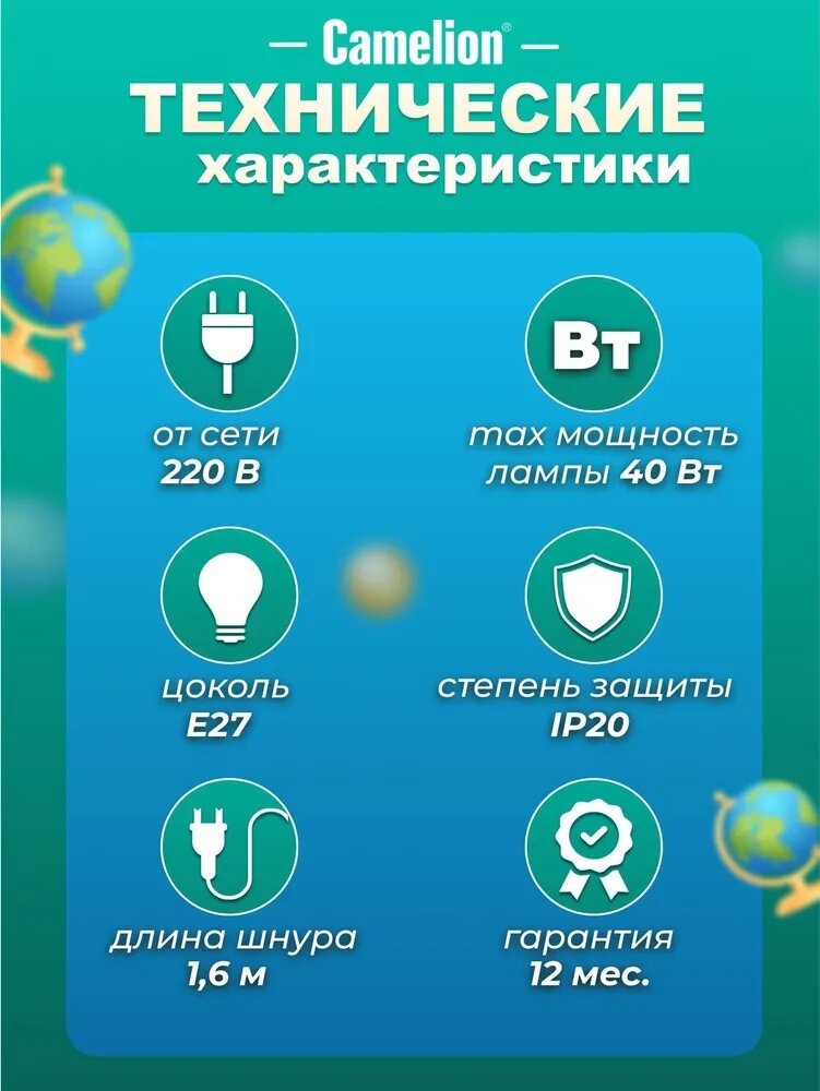 Светодиодный настольный CAMELION KD-335 C24 230V, 40Вт, E27, изумрудный