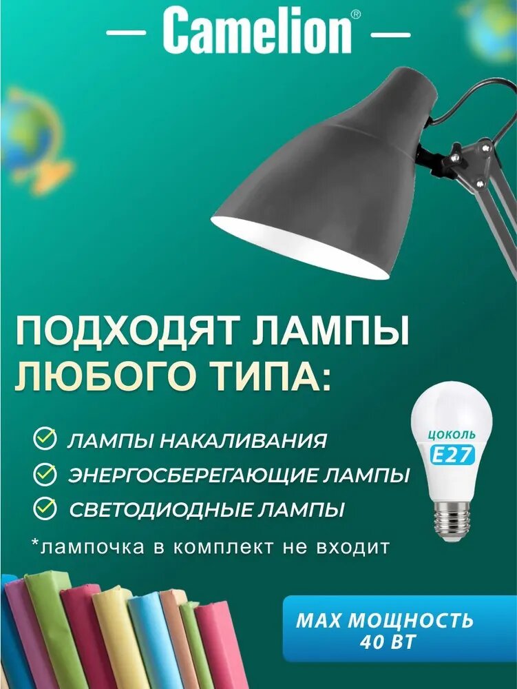Лампа офисная Camelion KD-335 C09, E27, 40 Вт, серый