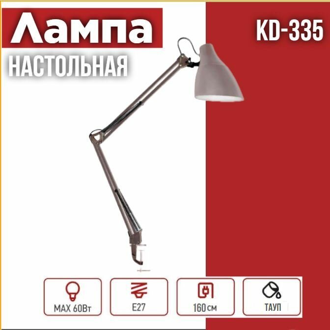 KD-335 C26 тауп (Свет-к настольн.с метал. струбциной, 230V, 40W, E27) акция!!!, CAMELION 13878 (1 шт.)