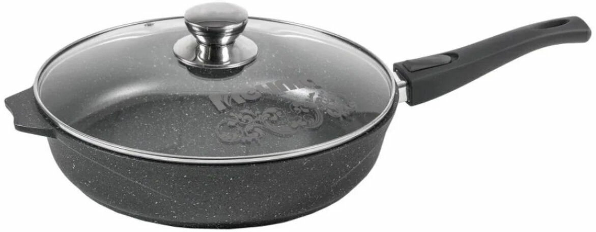 Сковорода мечта 26см с ручкой, антипригарное покрытие, стеклянная крышка, Гранит, black