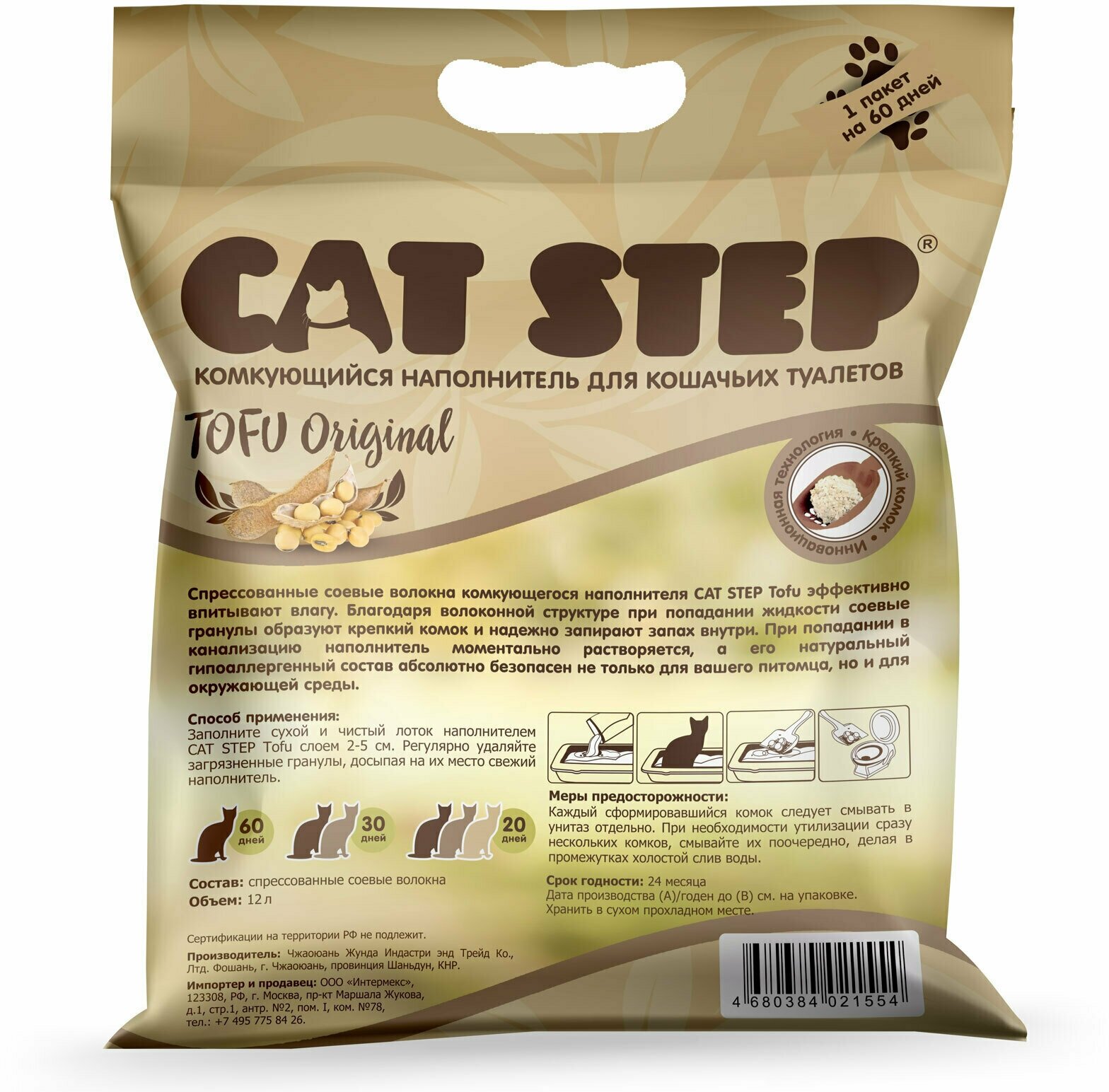 CAT STEP TOFU ORIGINAL - Кэт степ наполнитель комкующийся для туалета кошек (12 + 12 л)