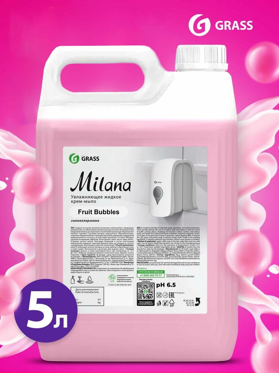 Мыло Жидкое Жидкое Крем-Мыло Milana Fruit Bubbles 5кг GraSS арт. 125318