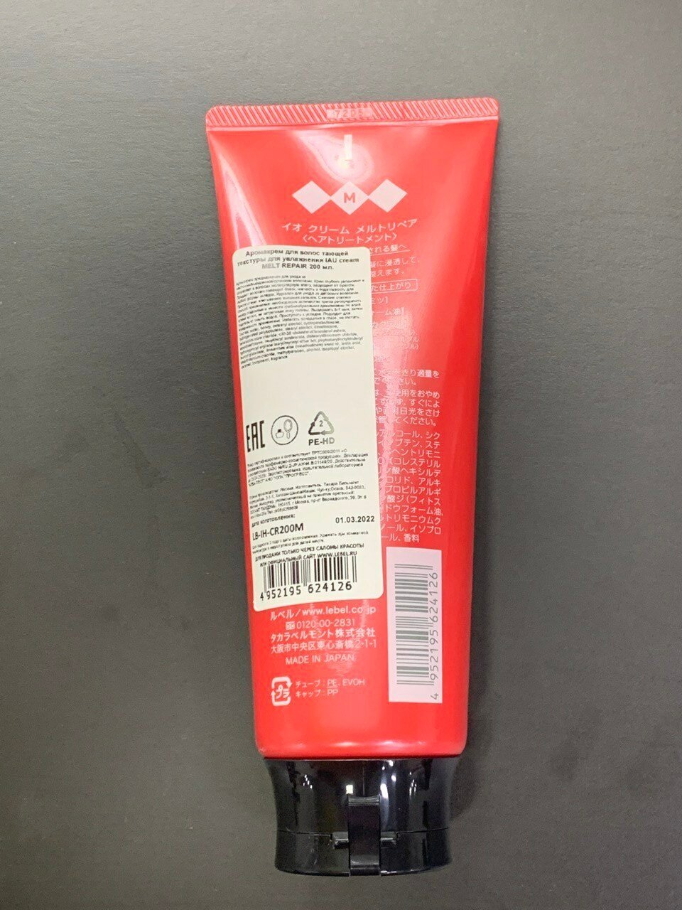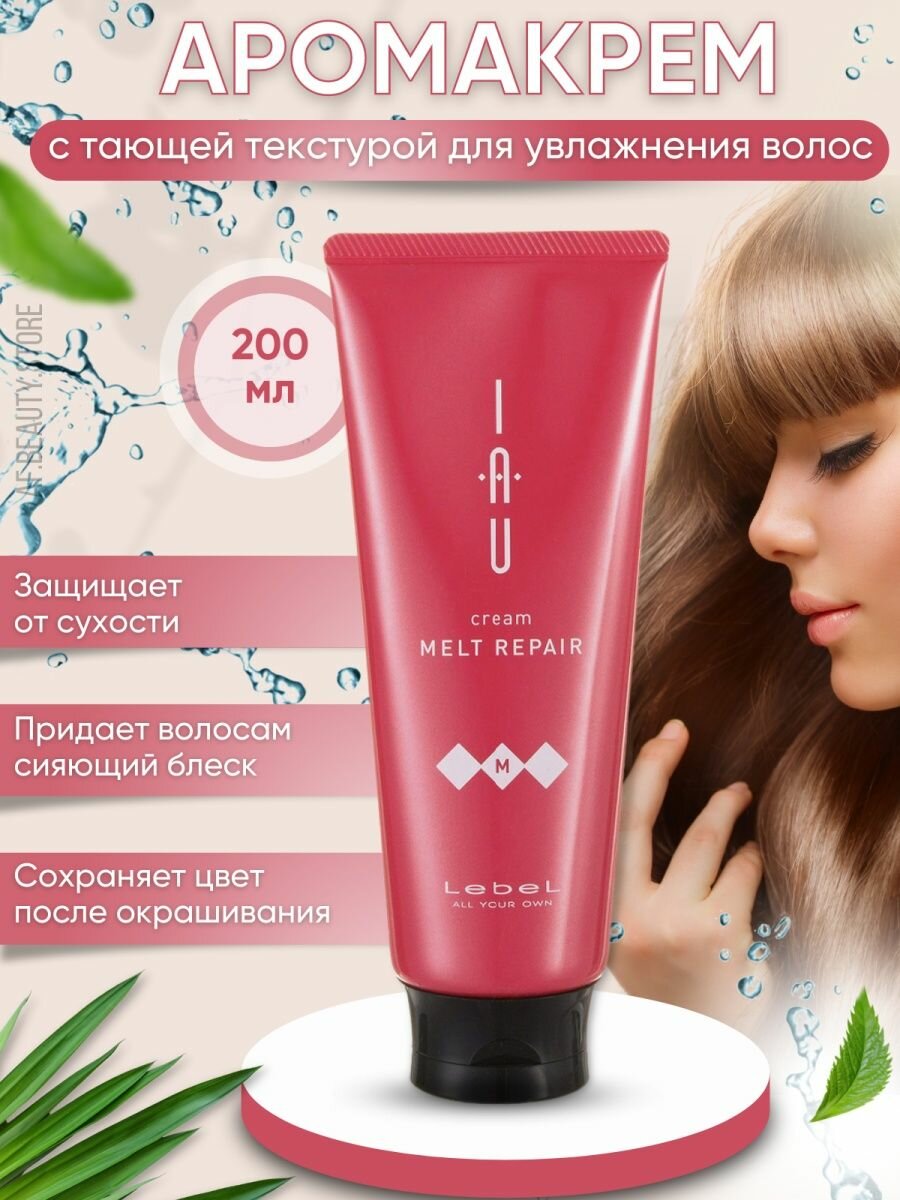 Lebel Cosmetics Аромакрем для волос тающей текстуры для увлажнения IAU cream Melt Repair, 200 г, 200 мл, туба
