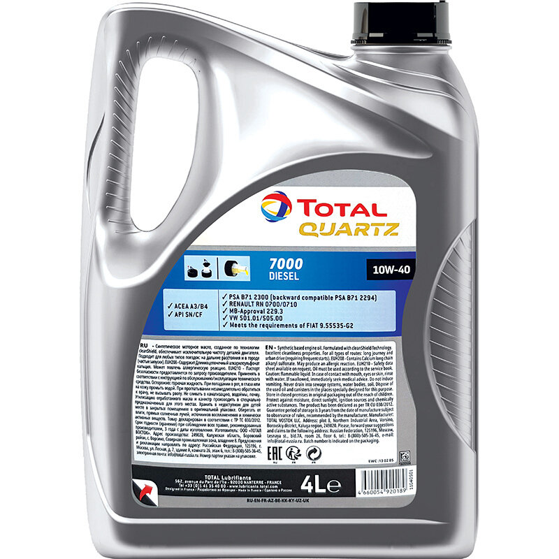 Масло моторное total quartz diesel 7000 10w-40 синтетическое 4 л 10740501