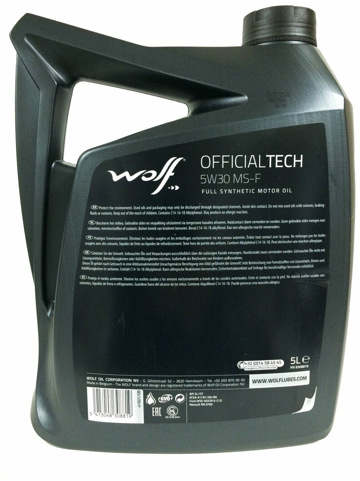 WOLF OIL 8308819 Масло моторное Wolf Oil OFFICIALTECH MS-F 5W-30 синтетическое 5 л 8308819