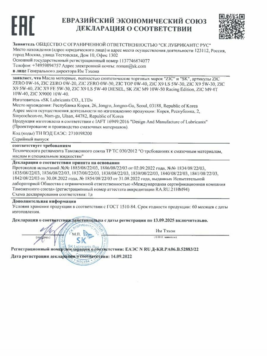 zic zero 20 0w20 (1l)_масло мот.! синт.\ api sp, ilsac gf-6, dexos 1 gen2