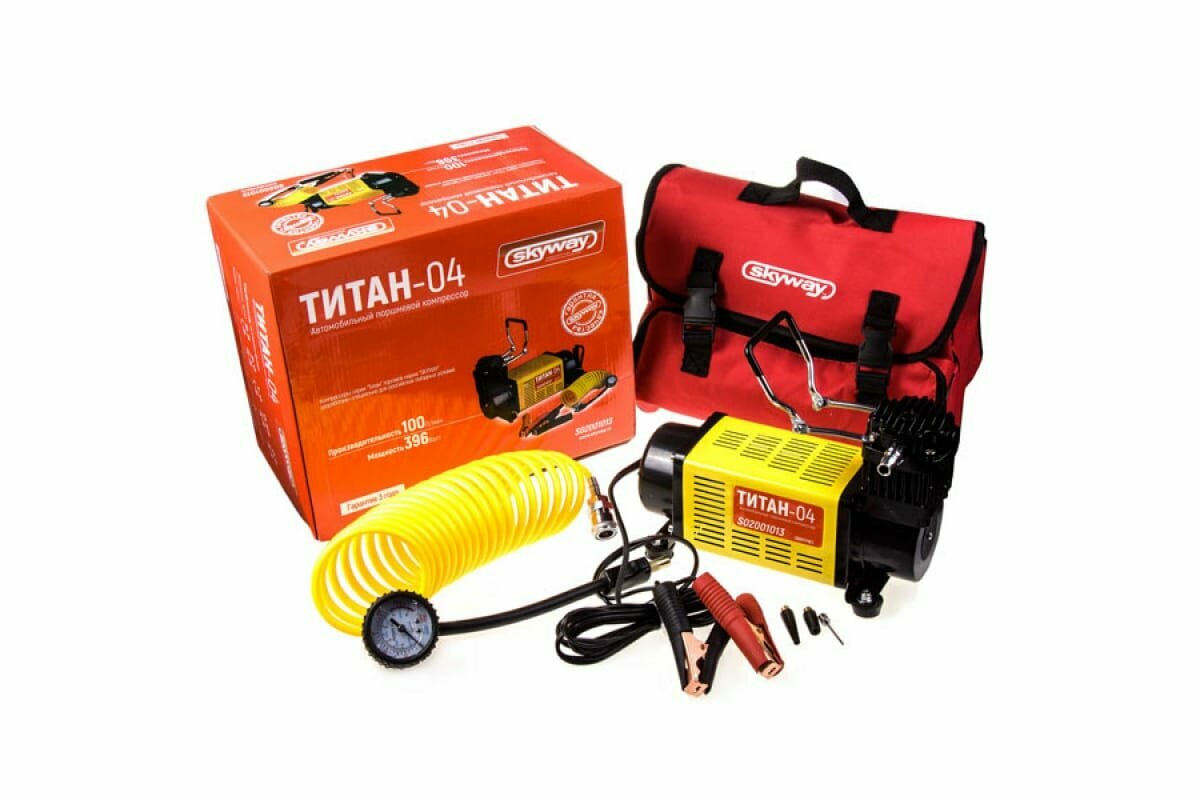 Металлический компрессор 100л/мин с крокодилами в сумке 10АТМ SKYWAY ТИТАН-04 S02001013