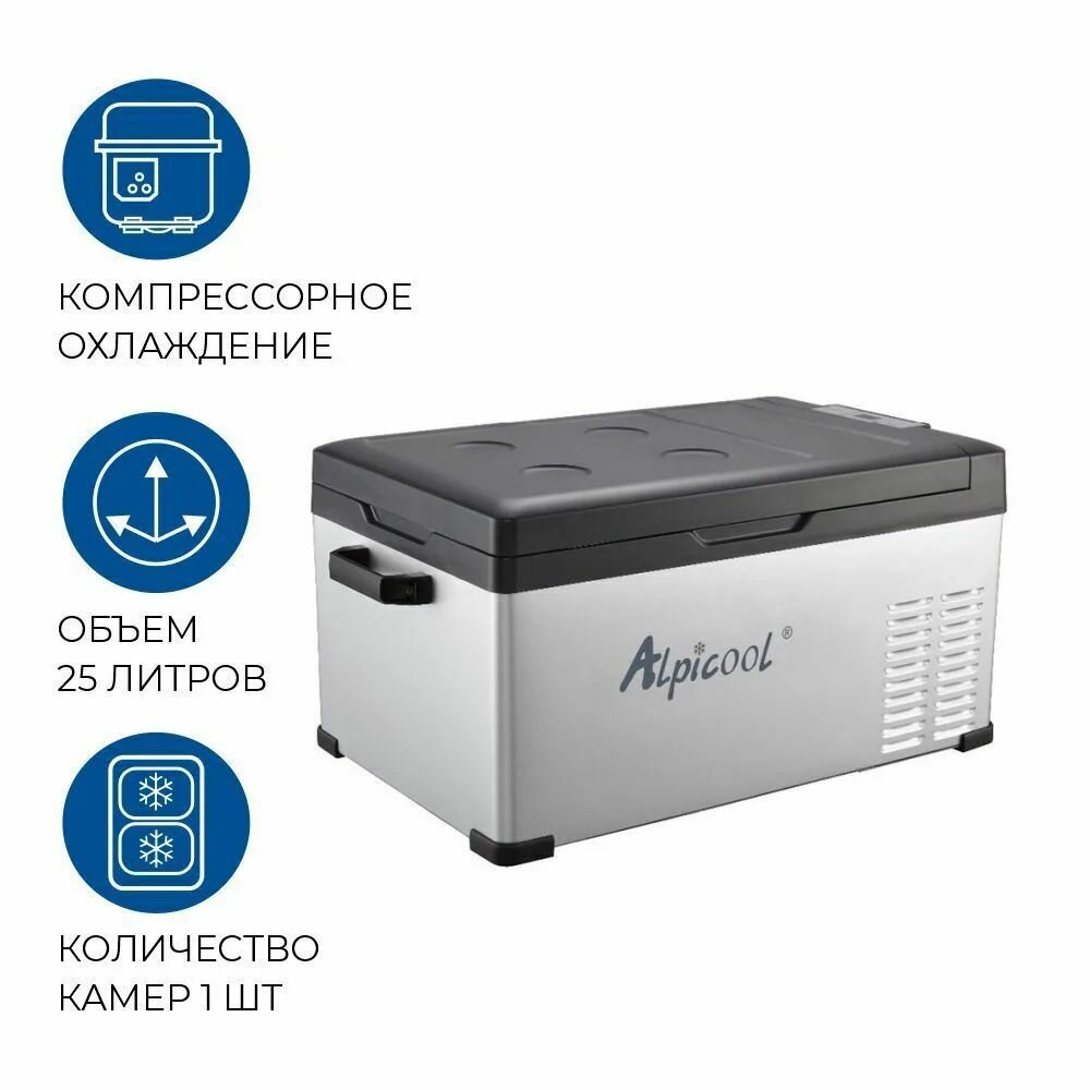 Kомпрессорный автохолодильник ALPICOOL C25 черный (25л, 12/24/220В)