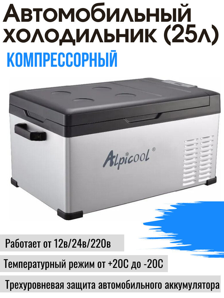 Автомобильный холодильник компрессорный (автохолодильник) ALPICOOL C25 (25 литров)