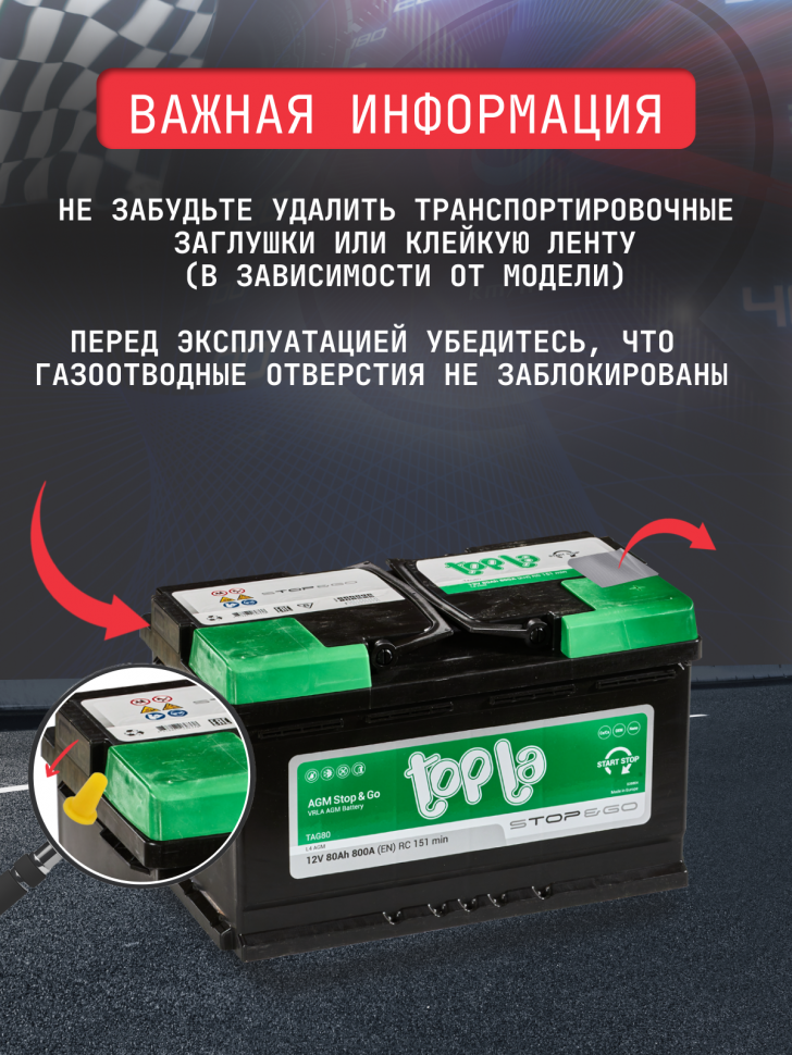 Аккумулятор автомобильный TOPLA AGM 6СТ-80 обр. (Start-Stop) 315x175x190
