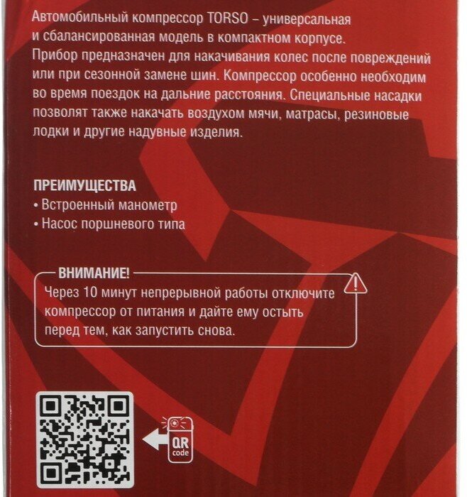 Ниже Вы можете прочитать отзывы на Компрессор автомобильный TORSO, серия "Торнадо" 35 л/мин, ознакомится с подробными характеристиками, посмотреть интересные обзоры и фотографии на Компрессор автомобильный TORSO, серия "Торнадо" 35 л/мин.