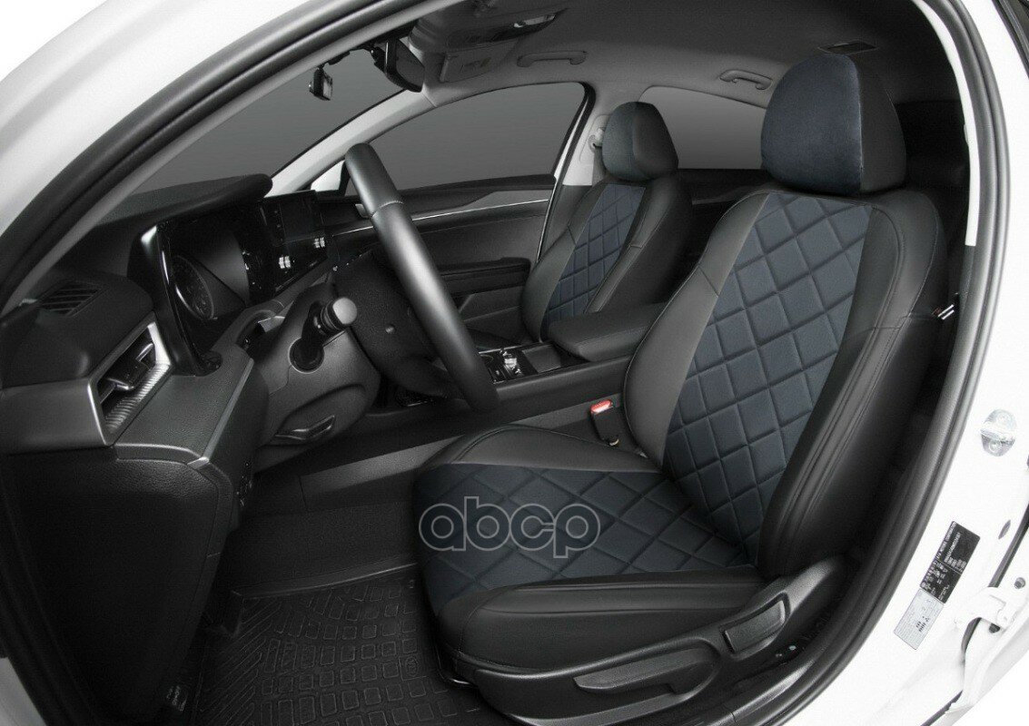 Авточехлы Rival Ромб (зад. спинка 40/60) для сидений Skoda Rapid I, II лифтбек (без заднего подлокотника) 2013-2020 2020-н.в./Volkswagen Polo VI лифтбек (без заднего подлокотника) 2020-н.в., алькантара/эко-кожа, черные, SC.5101.4