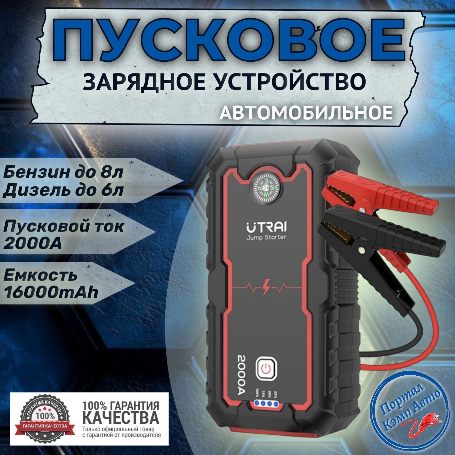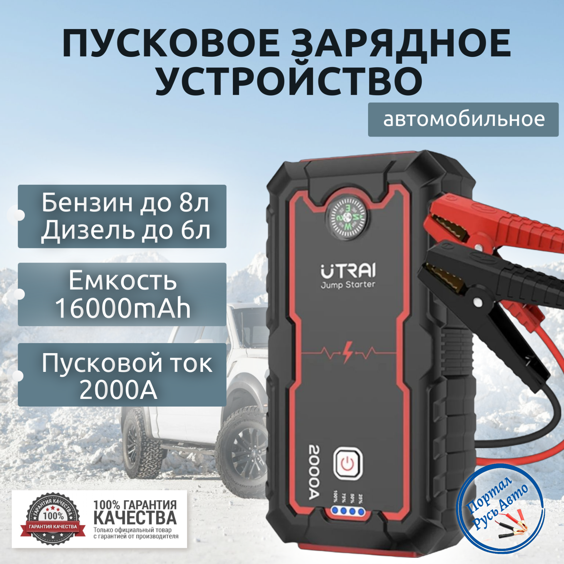 Пусковое портативное устройство, бустер UTRAI 8000mAh 1000A