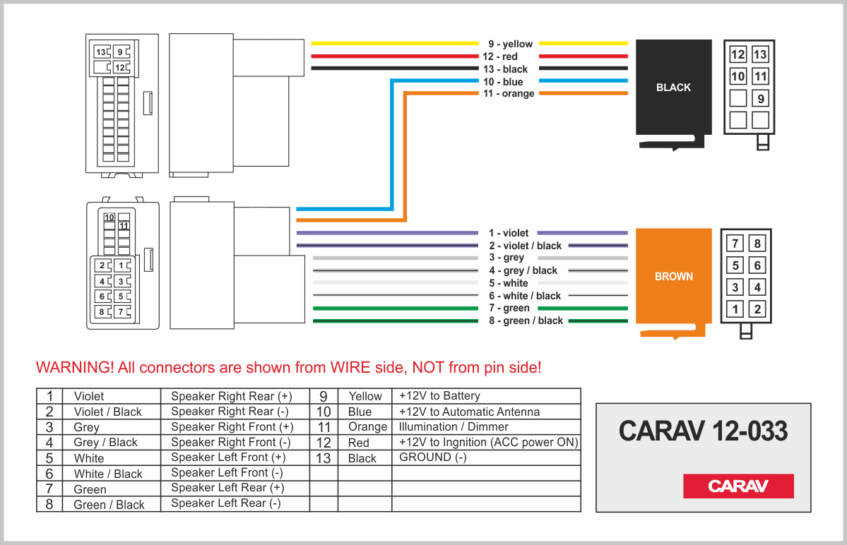 Разъем CARAV 12-033 / ISO - переходник для подключения автомагнитолы (питание + акустика) на автомобили HYUNDAI 2009+ (select models) / KIA 2010+ (select models)