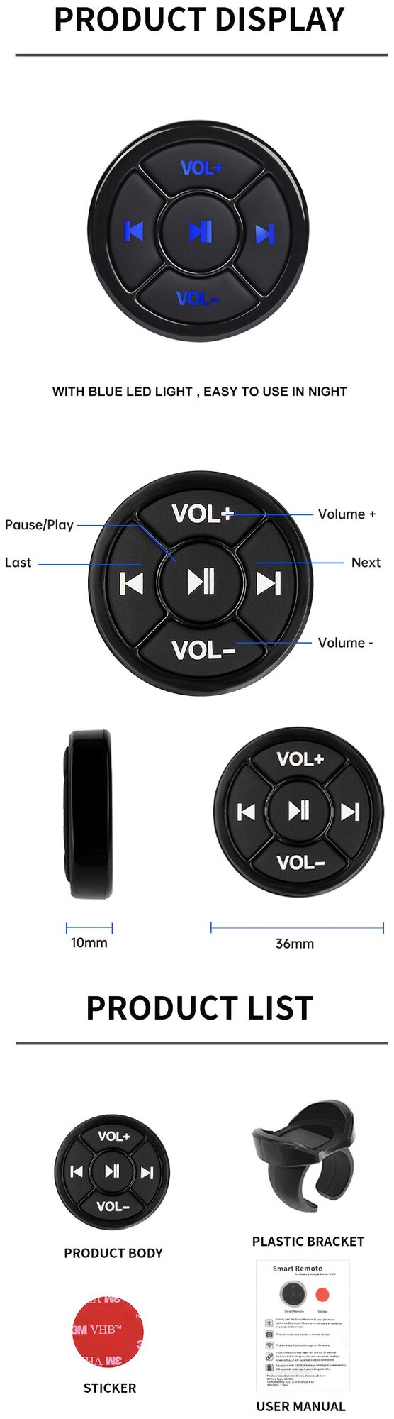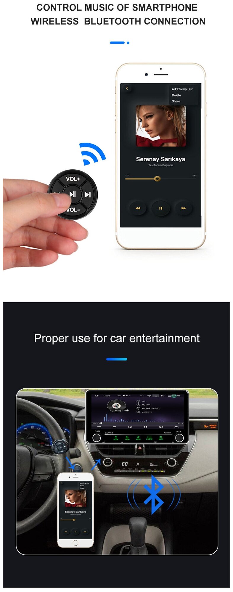 Купить Bluetooth кнопки / Bluetooth кнопки на руль / Bluetooth кнопки в салон автомобиля / Bluetooth кнопки для музыки для телефона