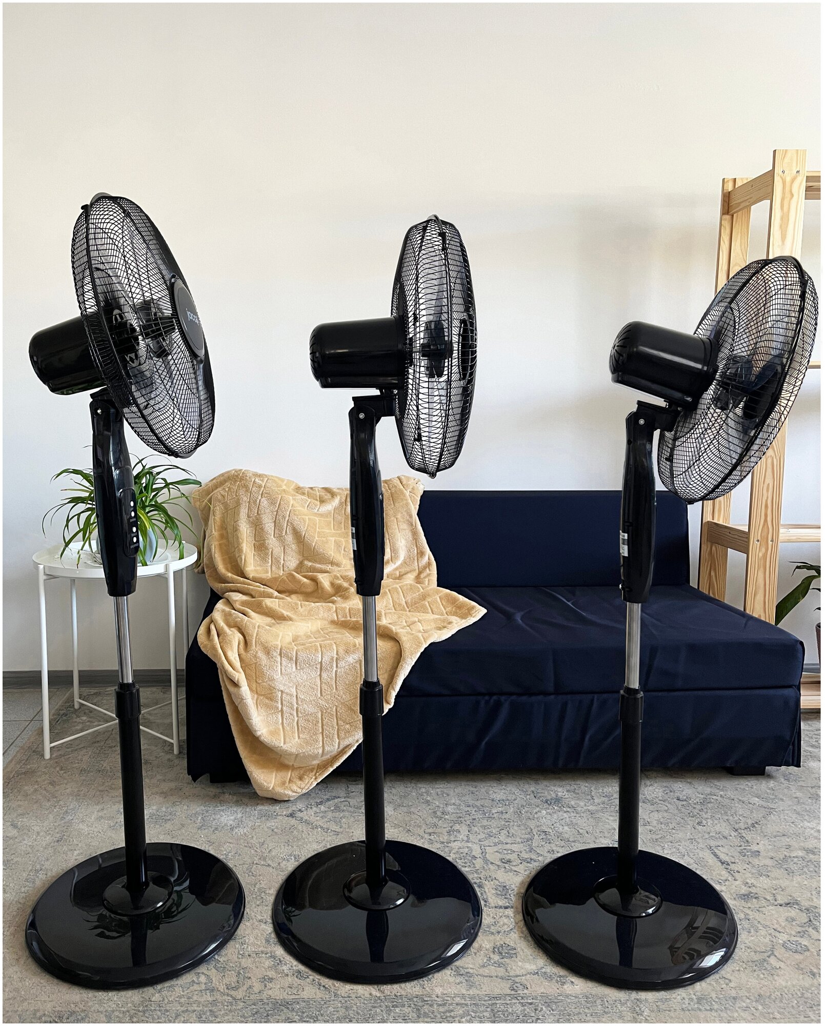 | Плюсы: | Отличный вентилятор, не шумный, легко собрали, а самое главное удобный , с таймером и пультом. Смотрится очень эффектно |