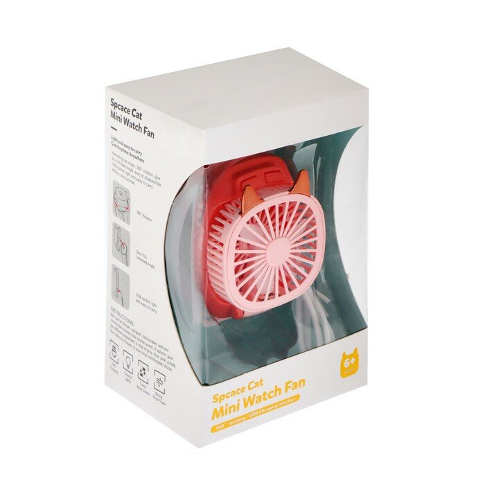 Купить Мини вентилятор в форме наручных часов LOF-09, 3 скорости, подсветка, розовый