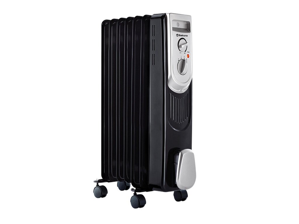 SAKURA Обогреватель Sakura SA-0337B, масляный, напольный, 1500 Вт, 20 м2, 7 секций, чёрный