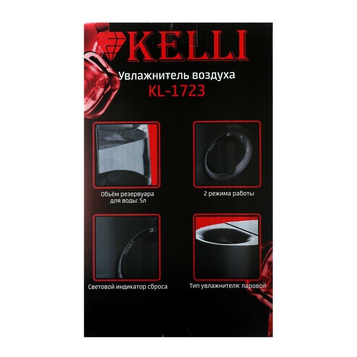 Купить Увлажнитель воздуха KELLI KL-1723, ультразвуковой, 325 Вт, 5 л, черный./В упаковке шт: 1