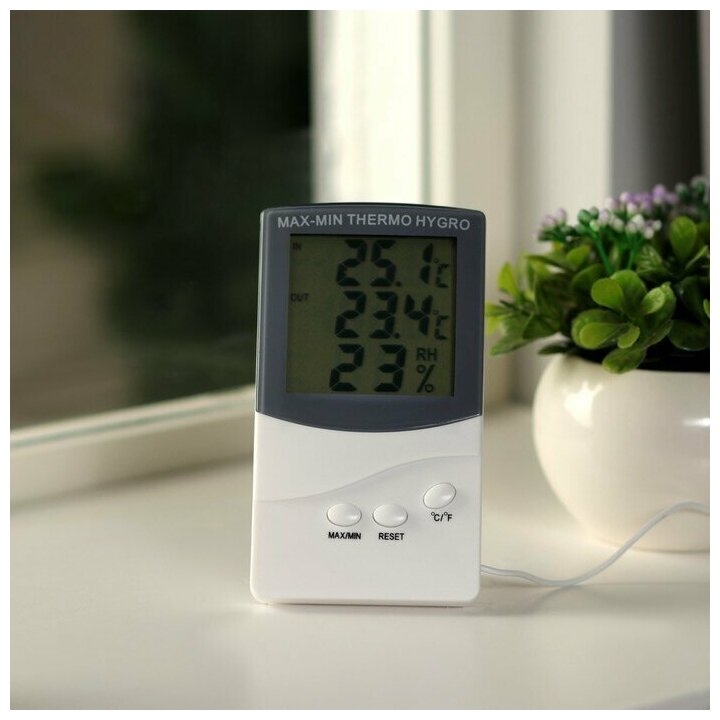 Термометр Luazon LTR-07, электронный, 2 датчика температуры, датчик влажности, белый