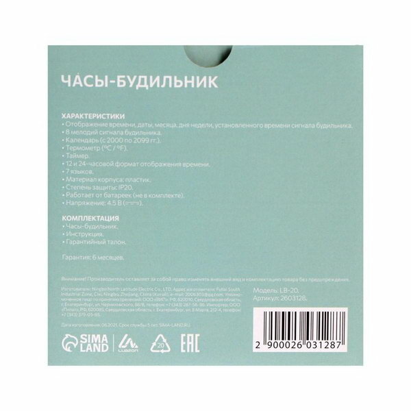 СохранитьБудильник Luazon LB-20, температура, подсветка срабатывает от хлопка, черный интересное:
