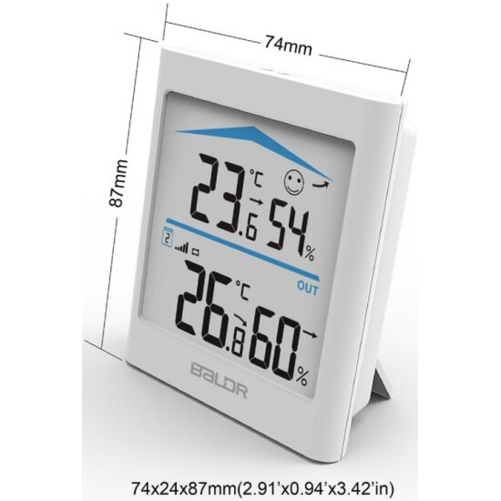 Термогигрометр цифровой с внешним датчиком Baldr B0135T2H2, белый интересное: