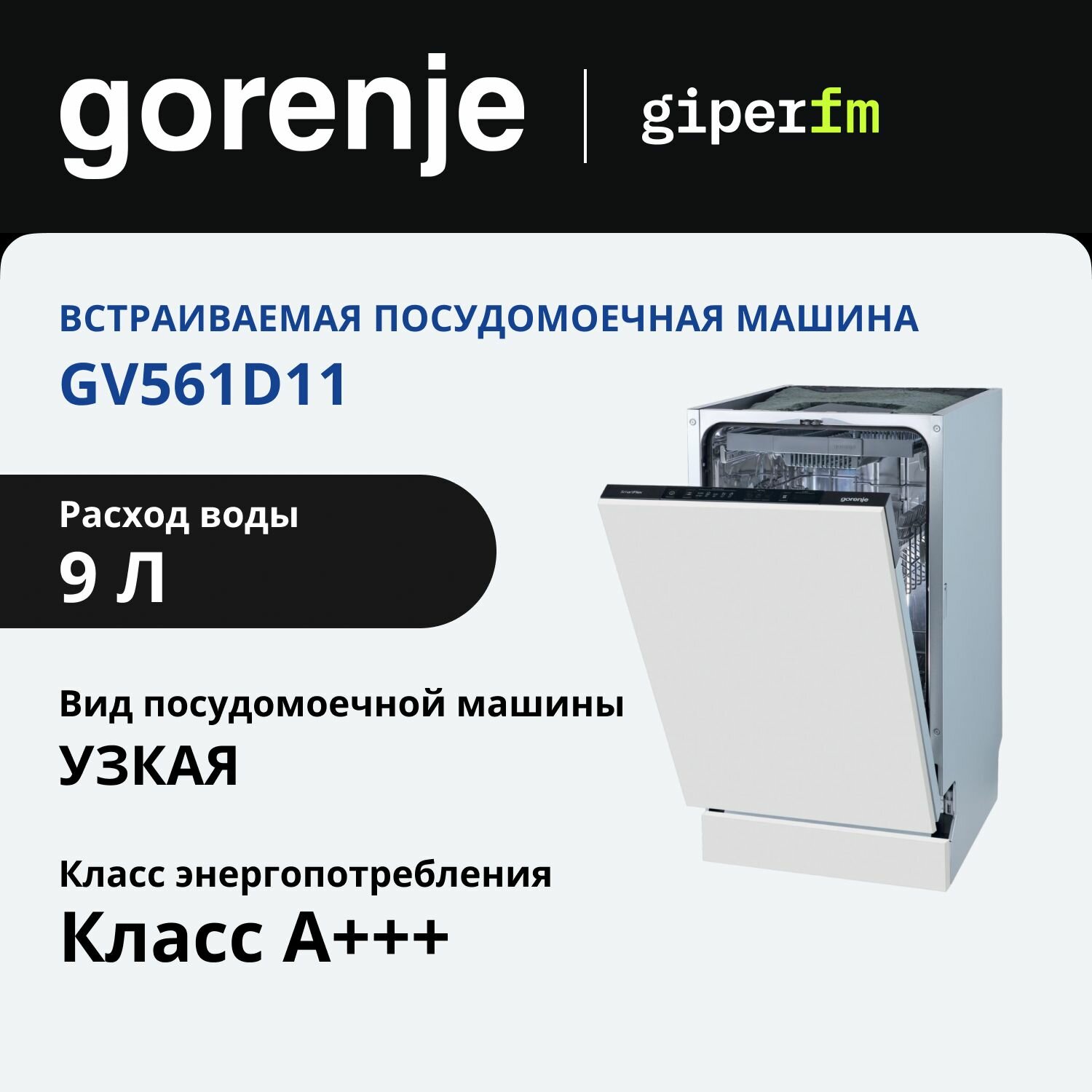 Встраиваемая посудомоечная машина Gorenje GV561D11, конденсационная сушка, стандартный двигатель