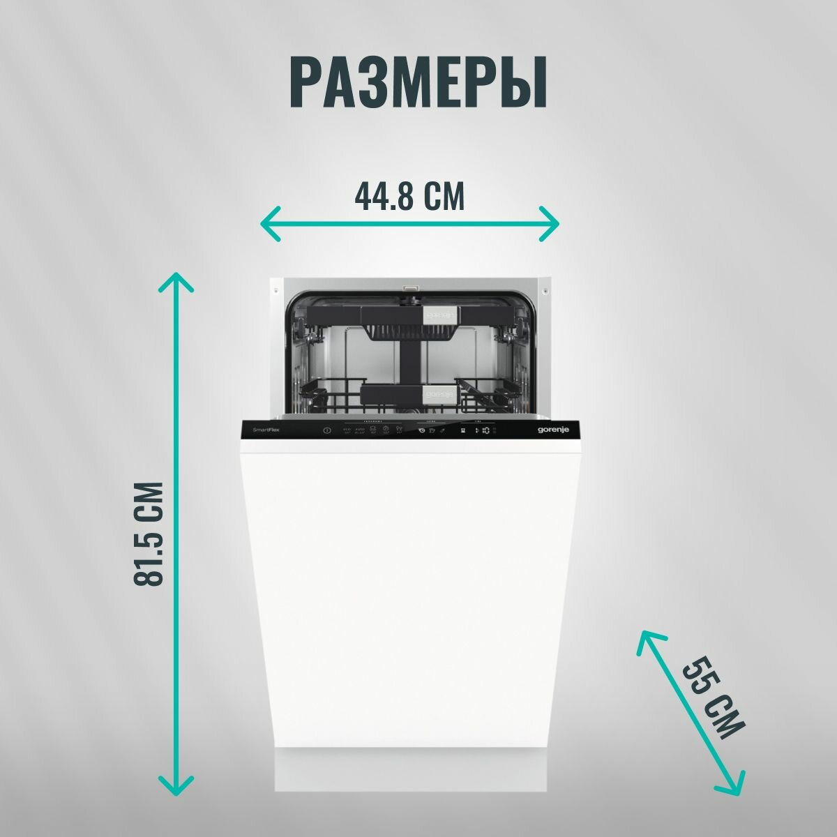 Встраиваемая посудомоечная машина Gorenje GV52041, узкая, ширина 44.8см, полновстраиваемая, загрузк