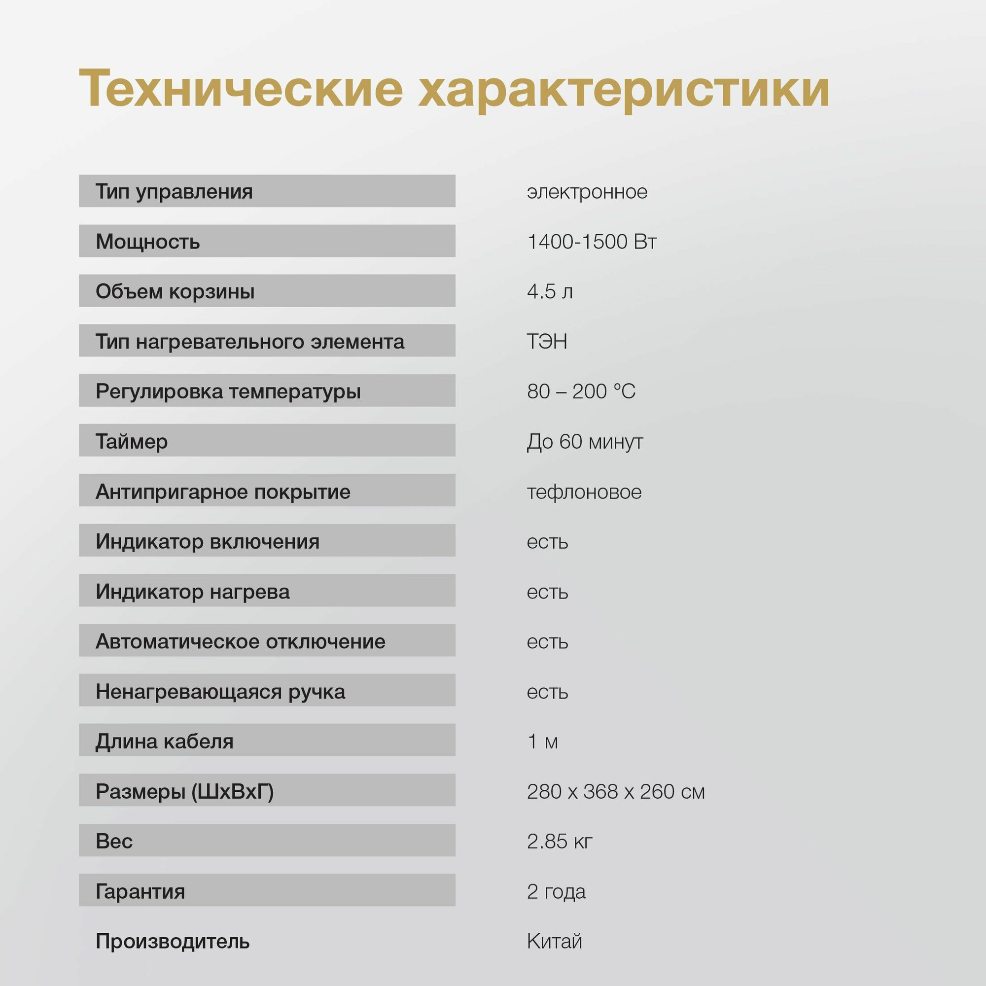 | Отзыв: | Довольно мощный! диапазон температуры позволяет готовить любые продукты от мяса до картофеля!! удобно мыть, жир нигде не забивается что важно так как посторонние запахи при приготовлении могут испортить вкус исходного блюда. |