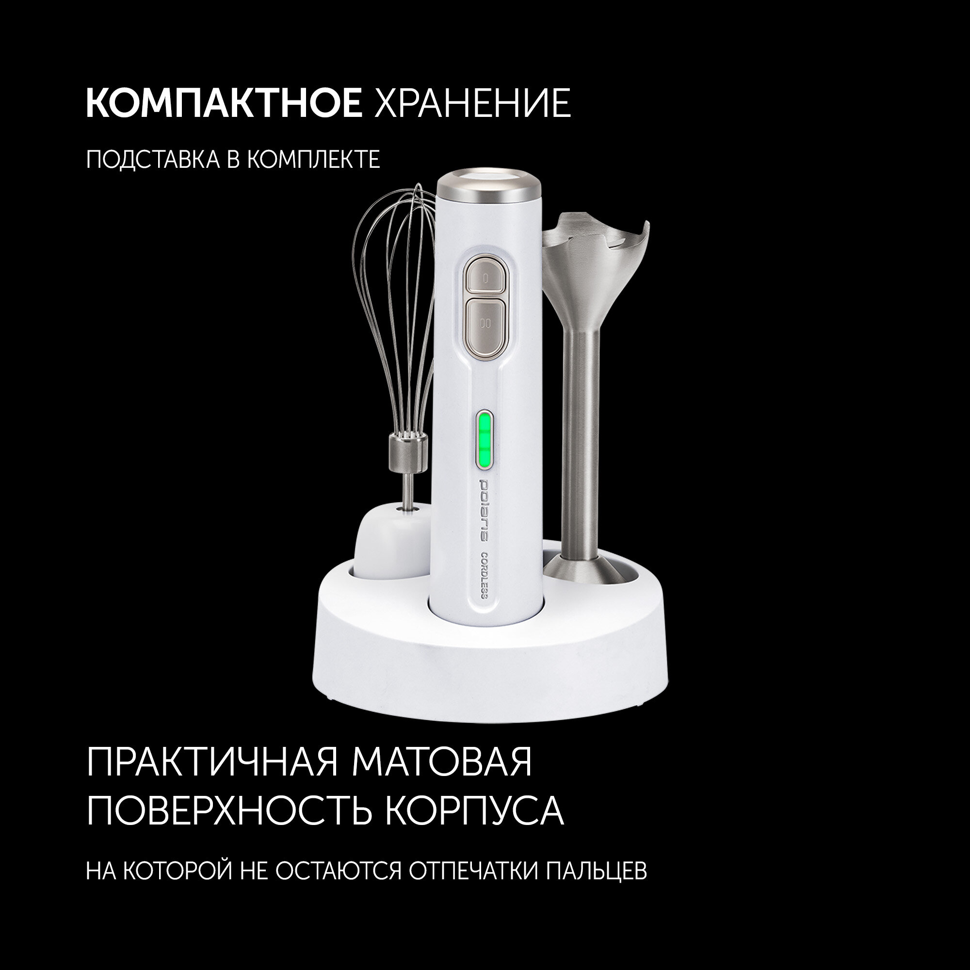Блендер Polaris PHB 0746 CordLess, погружной, белый