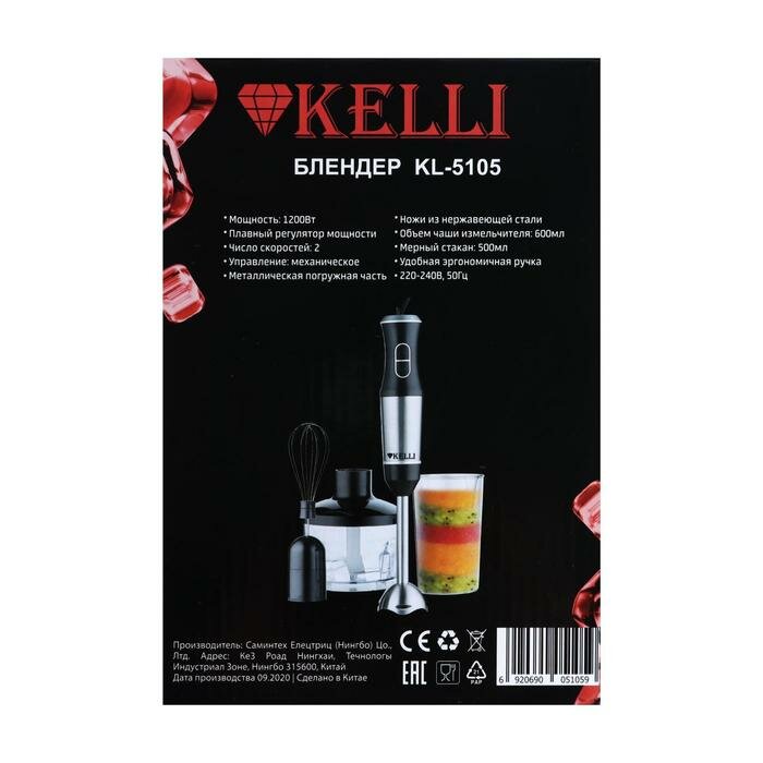 Купить Блендер KELLI KL-5105, погружной, 1200 Вт, 2 скорости, стакан 0.5 л, чёрный