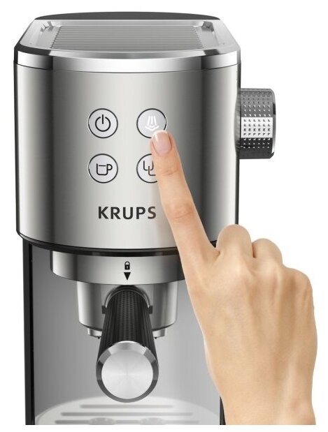 Кофеварка рожкового типа Krups Virtuoso XP442C11, автоотключение, подогрев чашек интересное: