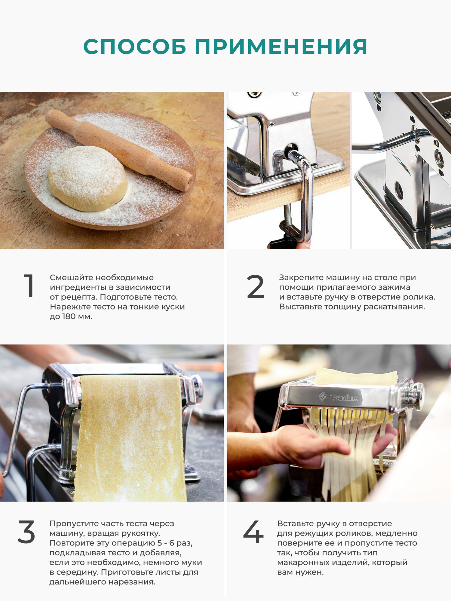 Ручная тестораскатка лапшерезка Gemlux GL-PMZ-180, машинка для раскатки теста, домашней яичной лапши, пасты, тестораскатывающая машина