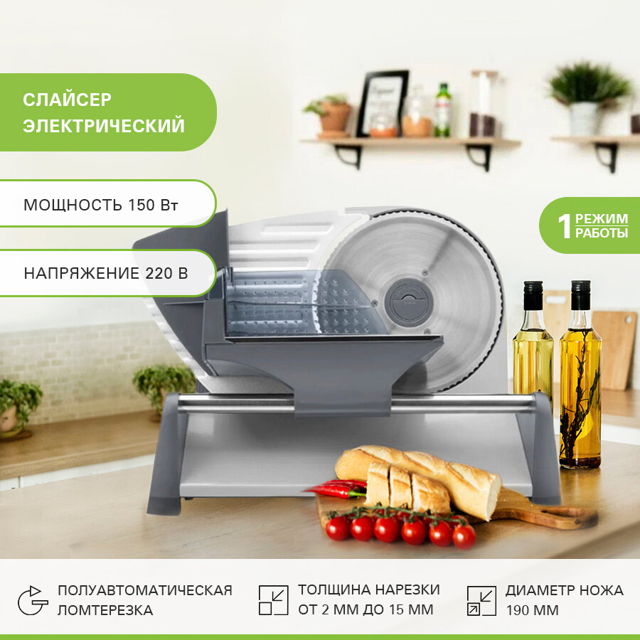 Ломтерезка, ломтерезка электрическая, слайсер для нарезки, 1 скорость работы, 150Вт, регулировка толщены нарезки