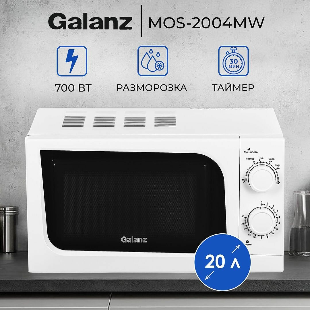 Микроволновая печь Galanz MOS-2004MW, 700 Вт, 20 л, белая