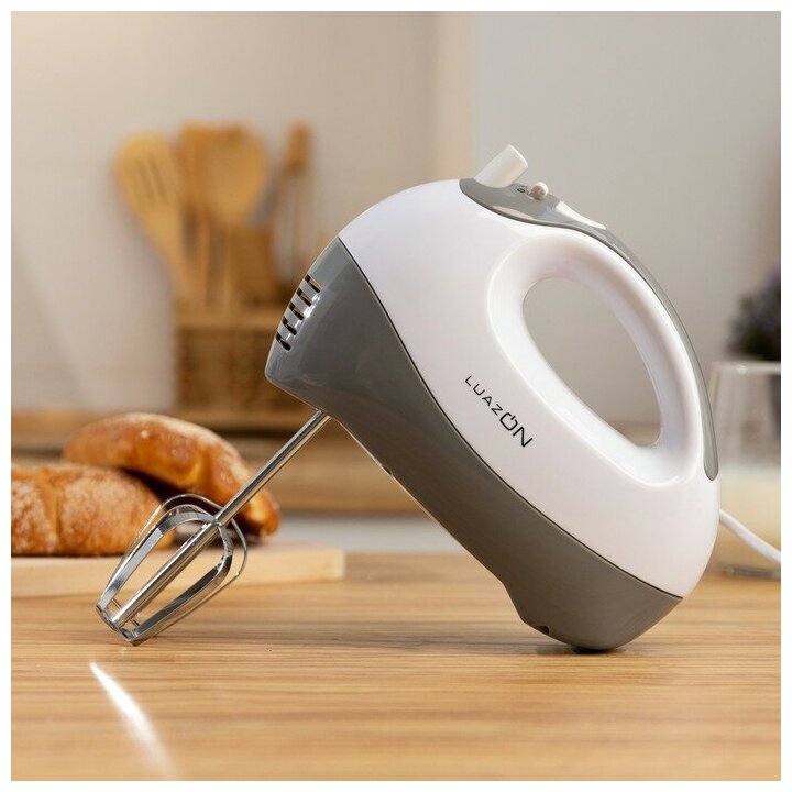 Купить Миксер Luazon LMR-06, ручной, 200 Вт, 5 скоростей, 2 насадки, режим "турбо", серый