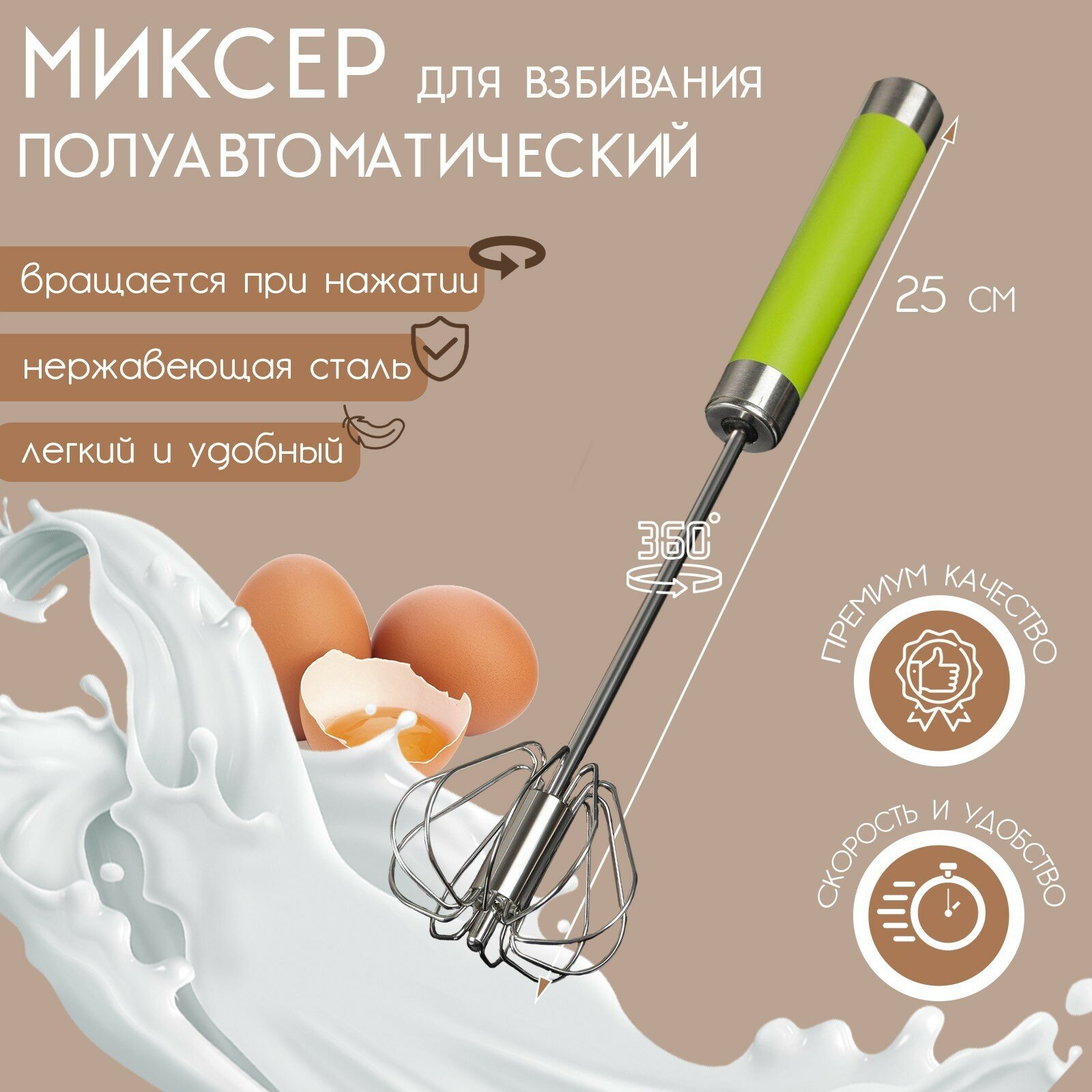 Купить Миксер механический Доляна Color, 25 см, нержавеющая сталь, цвет микс