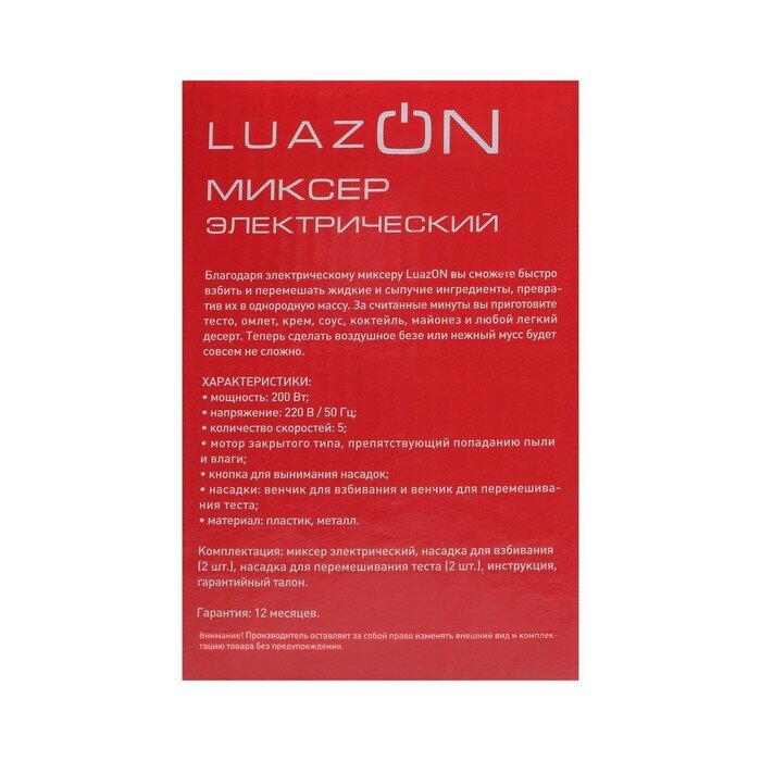 Ниже Вы можете прочитать отзывы на Luazon Home Миксер LuazON LMR-06, ручной, 200 Вт, 5 скоростей, 2 насадки, режим "турбо", серый, ознакомится с подробными характеристиками, посмотреть интересные обзоры и фотографии на Luazon Home Миксер LuazON LMR-06, ручной, 200 Вт, 5 скоростей, 2 насадки, режим "турбо", серый.
