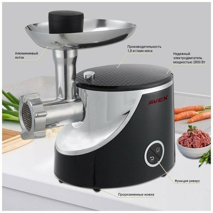 Мясорубка AVEX MG-280B электрическая, 2800 Вт, 1,8 кг/минуту, реверс, домашняя колбаса