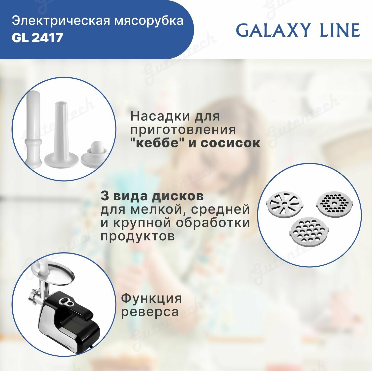 Мясорубка Galaxy Line GL 2417 черный/серебристый (гл2417л)