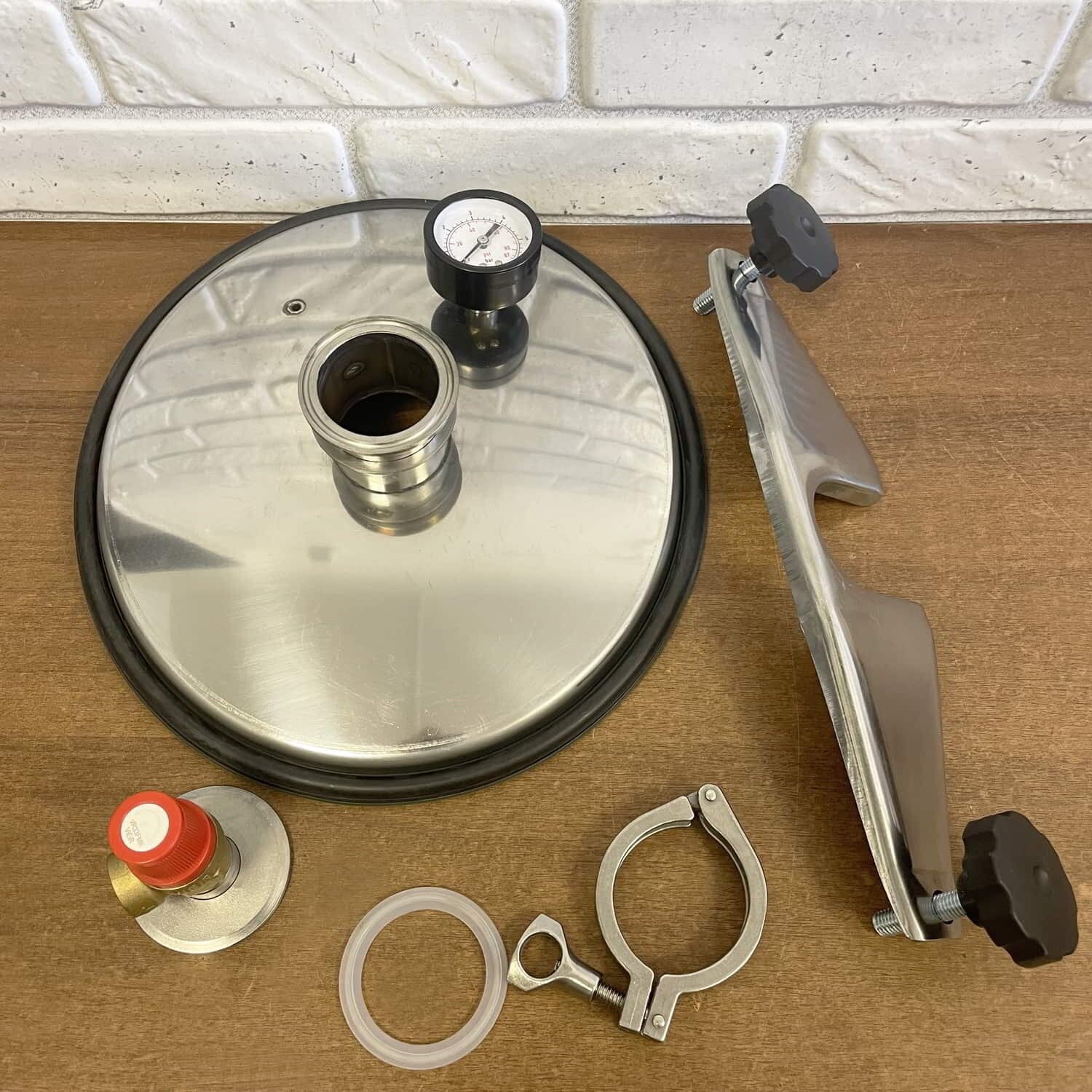 | Минусы: | Способ крепления крышки уменьшает полезный Объём. При обычном крепления, поместилось бы 14 0,5 л. Банок. Можно добавить в комплектацию насадку с нипелем на клапан безопасности для предварительной закачки воздуха. Кассета станет лишней при стерилизации на воде, количество банок увеличется. |
