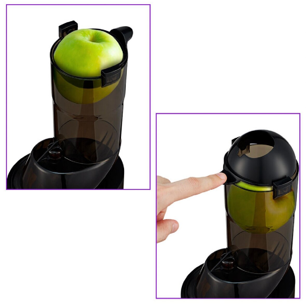 | Плюсы: | Недорогой, прост в обращение, можно загрузить целиком яблоко. Есть система капля стоп. |