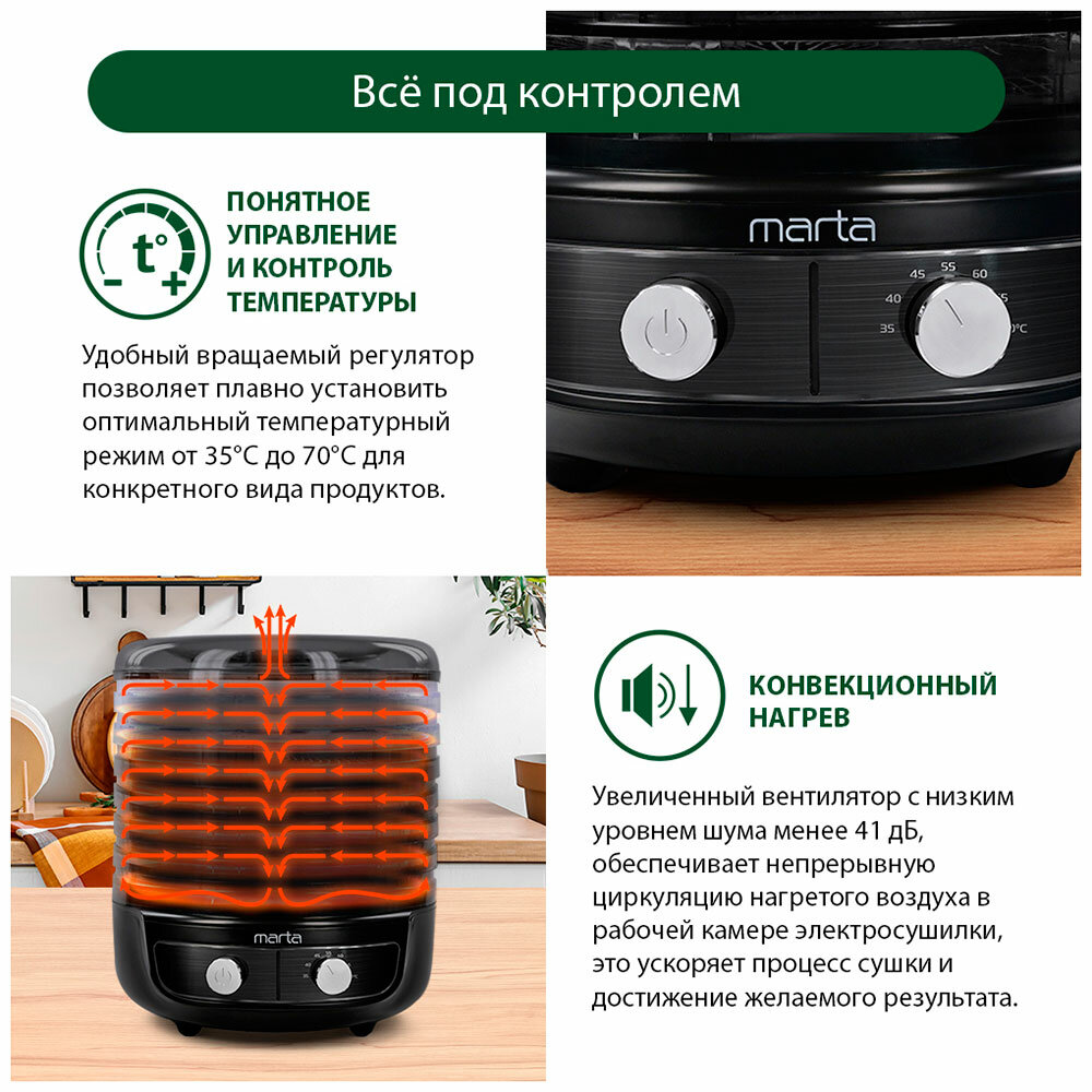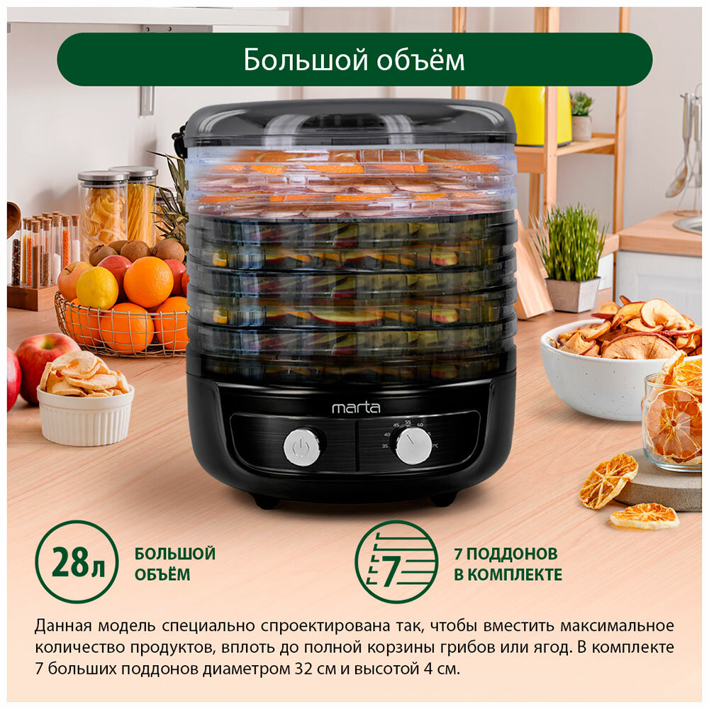 Сушилка для овощей и фруктов MARTA MFD-8017PS, темный обсидиан (37589)