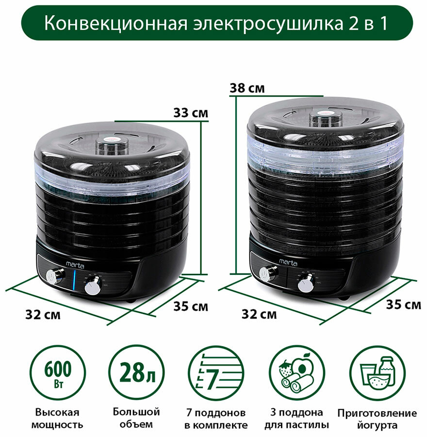 Сушилка для овощей и фруктов MARTA MFD-8017PS, темный обсидиан