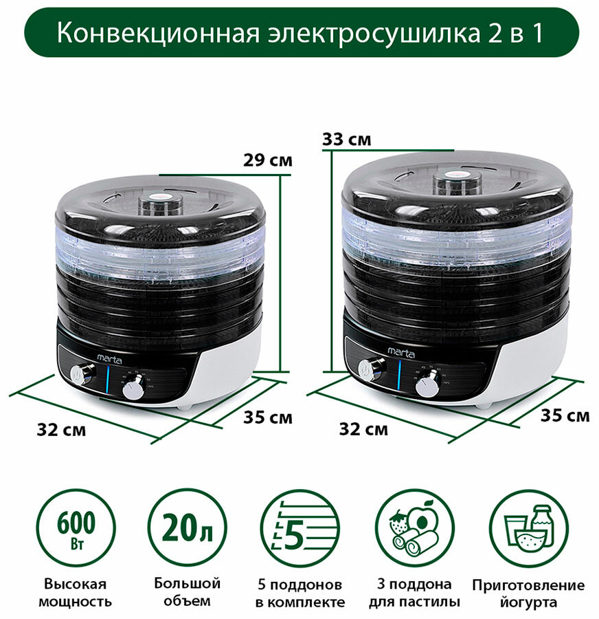 Сушилка для овощей и фруктов MARTA MFD-8053PS, черный жемчуг