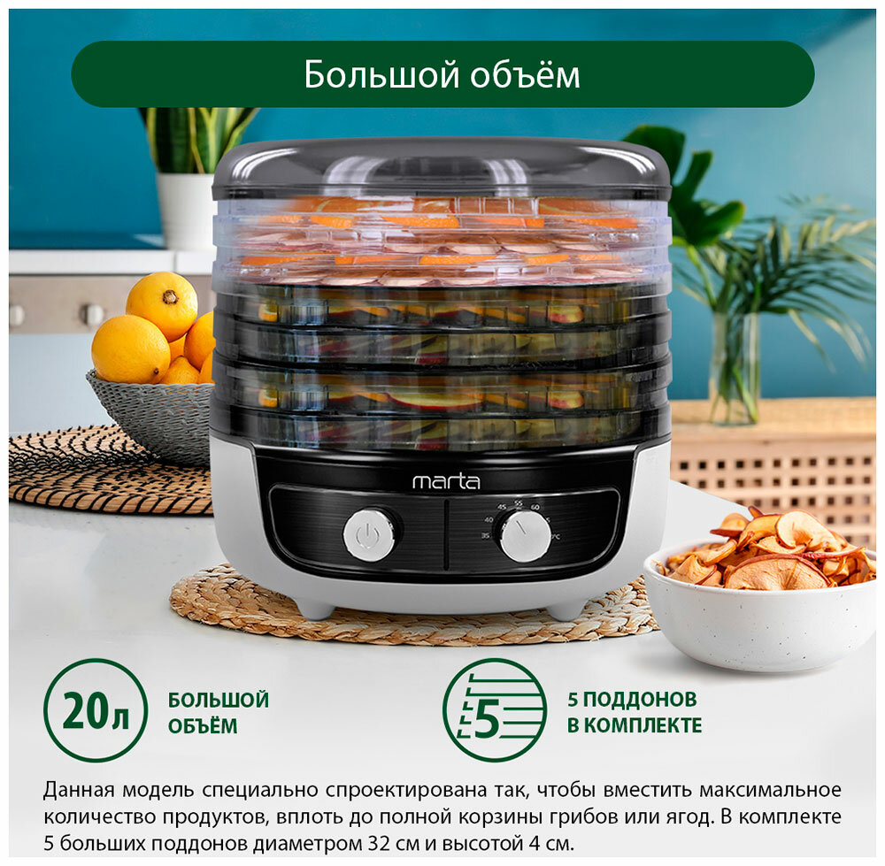 Сушилка для овощей и фруктов MARTA MFD-8053PS, темный обсидиан (37591)