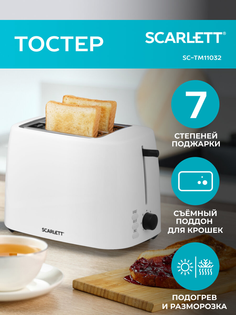 Тостер Scarlett SC-TM11032 с режимом подогрева и разморозки 7 степеней обжарки