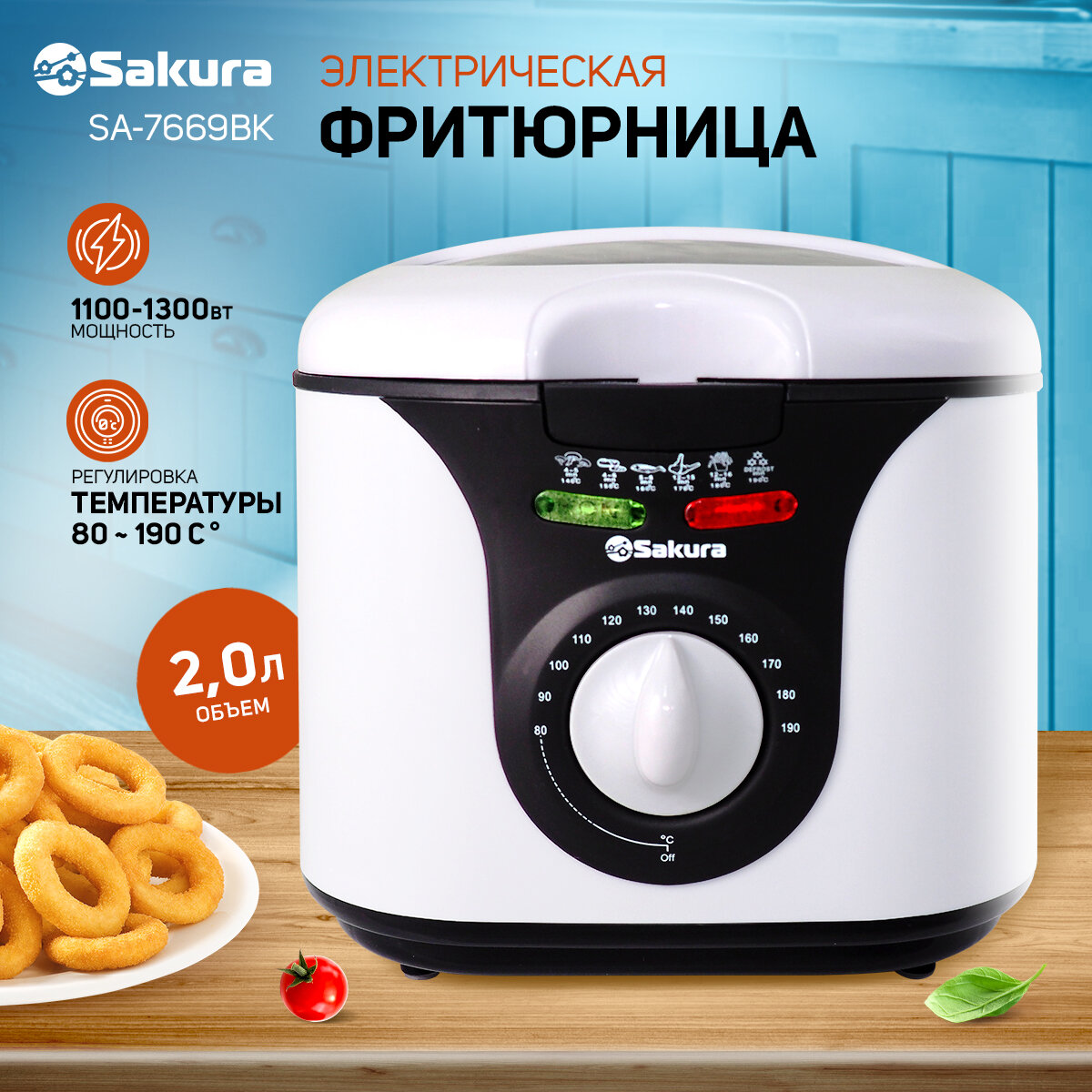 Фритюрница SAKURA SA-7669BK 2.0л, 1100-1300Вт, белый/черный